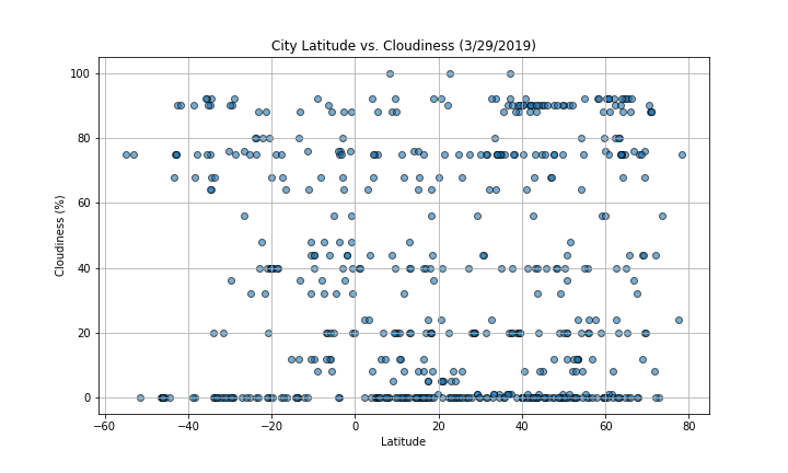 After assembling the dataset, we used Matplotlib to plot various aspects of the weather vs. latitude. Factors we looked at included: temperature, cloudiness, wind speed, and humidity. This site provides the source data and visualisations created as part of the analysis, as well as explanations and descriptions of any trends and correlations witnessed.